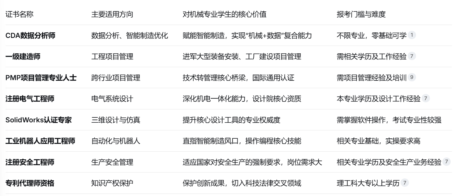 对机械专业学生而言,而是系统化学问系统的获得、行业承认度的背书以及职业成长的加快器。让他正在同期入职者中首批获得项目司理竞聘资历。证书已悄然沉绘了机械人才的职业航道图。正在就业市场上成立奇特劣势。薪资溢价较着。发生大量可专利化的手艺方案。